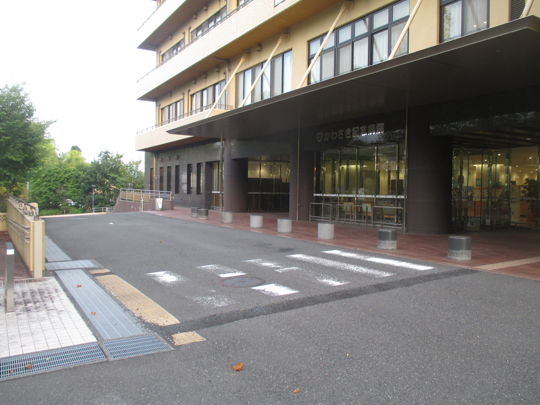 病院の正面は屋根もあり丁度良い外気浴スペースとなっています